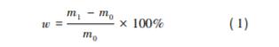 參照 GB /T 15780—1995《竹材物理力學(xué)性質(zhì) 試驗(yàn)方法》測(cè)定竹材含水率。對(duì)截取的新鮮竹筒 上方 2 cm 處尺寸為 10 mm×10 mm×t 的小竹塊進(jìn) 行含水率測(cè)試。取 10 個(gè)小竹塊稱質(zhì)量后放入 80 ℃烘箱中恒溫干燥至絕干,并記錄絕干竹塊的質(zhì) 量。竹材含水率( w) 計(jì)算公式為: