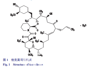 他 克 莫 司(tacrolimus)為 17- 烯丙基 -1,14- 二羥基 -12-[2-(4- 羥 -3- 甲氧基環(huán)己基)-1- 甲 基乙烯基]-23,25- 二甲氧基 -13,19,21,27- 四甲 基 -11,28- 二 噁 -4- 氮 雜 環(huán)[22.3.1.04,9]二 十 八 烷 -18- 烯 -2,3,10,16- 四 酮 一 水 合 物,結(jié) 構(gòu) 式 見 圖 1。相對(duì)分子質(zhì)量 822.02,按 無 水 物 計(jì) 算,含 C44H69NO12(他克莫司與異構(gòu)體I、異構(gòu)體II之和)應(yīng)為 98.0% ~102.0%。