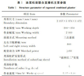 長(zhǎng)江中下游地區(qū)是我國(guó)冬油菜的主要種植區(qū) 域,該種植區(qū)土壤板結(jié),嚴(yán)重影響油菜生長(zhǎng),導(dǎo)致油 菜產(chǎn)量減少。油菜播種作業(yè)時(shí)對(duì)油菜種植的種 床帶進(jìn)行深松旋耕聯(lián)合作業(yè),有助于主根系防倒伏 以及油菜產(chǎn)量增加。土地耕整作業(yè)為創(chuàng)造良好的種 床廂面和種床帶做準(zhǔn)備,是整個(gè)油菜種植過(guò)程中一 個(gè)重要環(huán)節(jié)。傳統(tǒng)的土壤耕整主要采取旋耕方 式,近年來(lái),隨著油菜種植機(jī)械化程度的不斷提高, 深松和旋耕聯(lián)合作業(yè)逐漸成為趨勢(shì),深松旋耕聯(lián) 合作業(yè)改良了土壤層粒結(jié)構(gòu)和滲水、透氣性能,改善 作物根系生長(zhǎng)環(huán)境,有利于農(nóng)作物根系的生長(zhǎng)發(fā)育, 達(dá)到增產(chǎn)增收的效果。